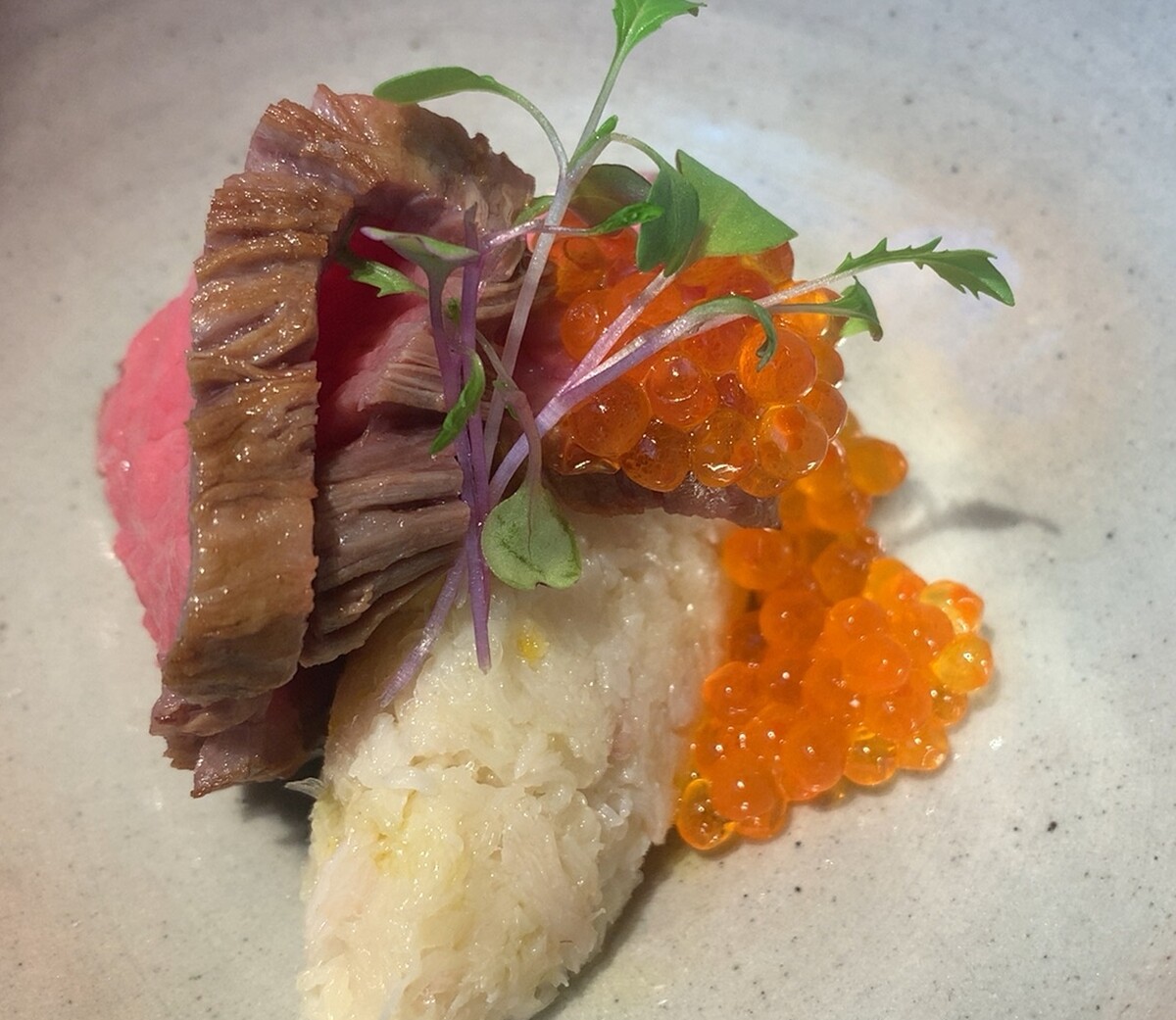 大和牛 塩鱈と大和橘胡椒のエスケシャーダ。
