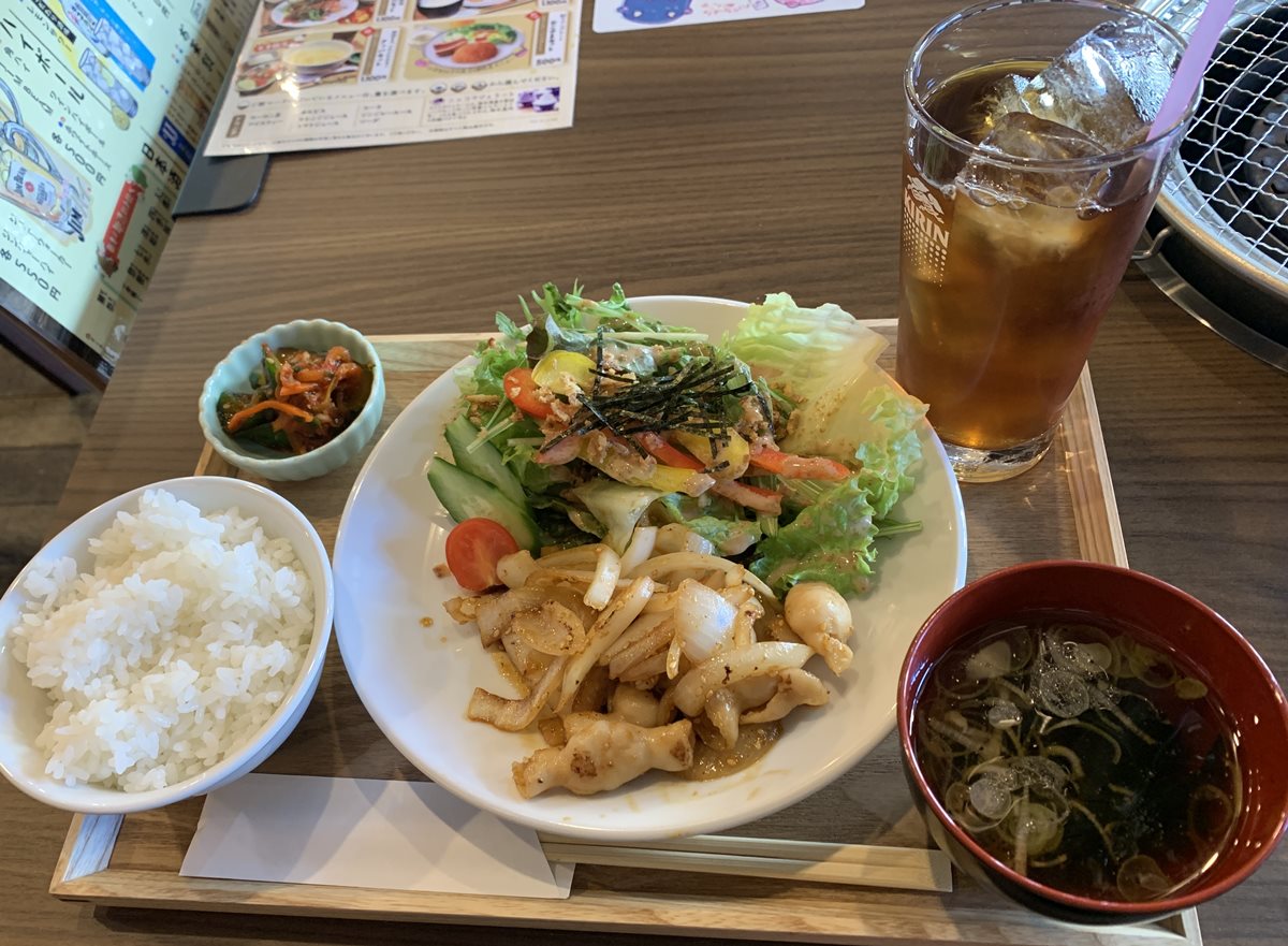 お子さまセットは頼めないので、ハラミ焼かホルモンビビンパか、ホルモン焼きか