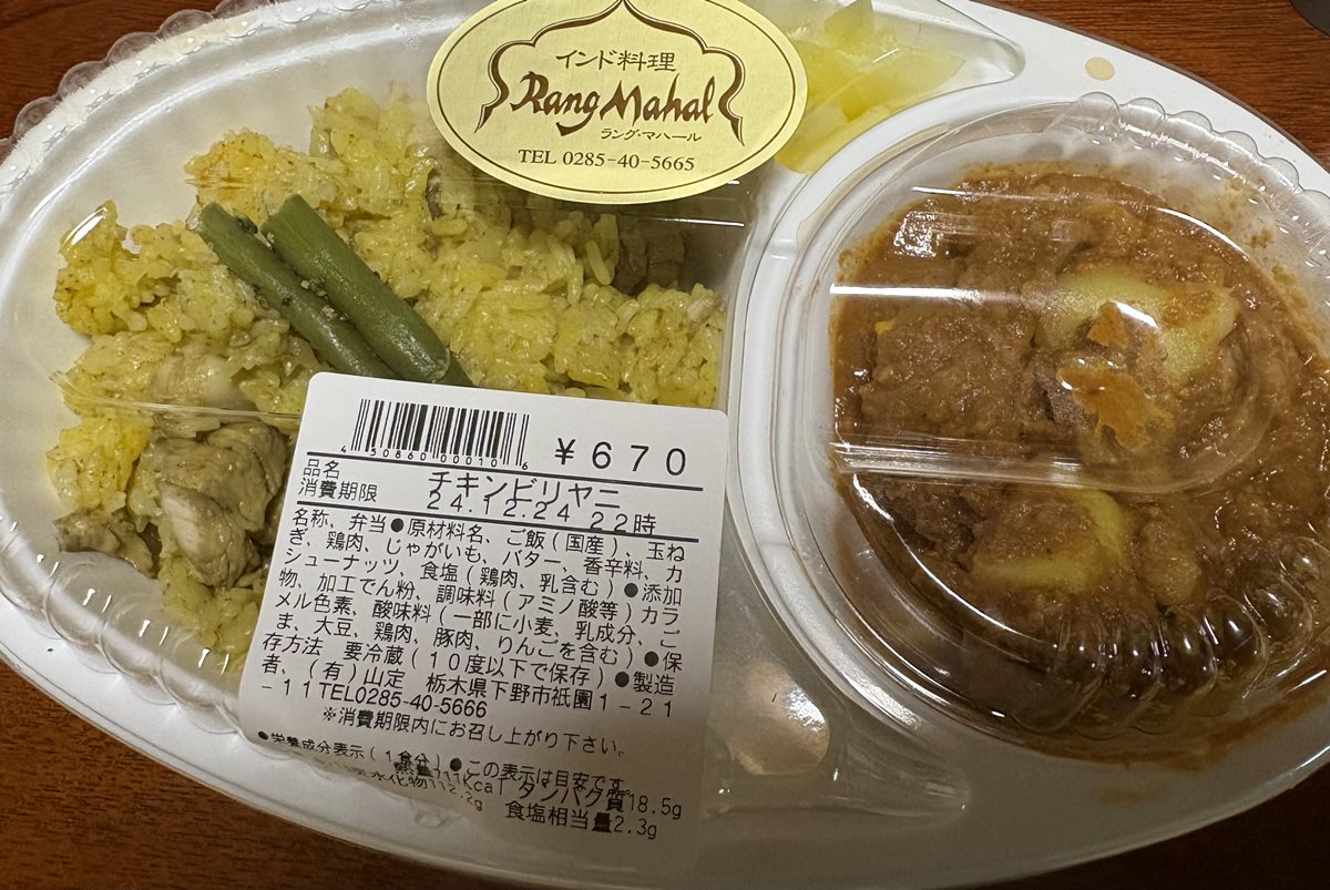 私はチキンビリヤニ弁当を買ってきて食べました。