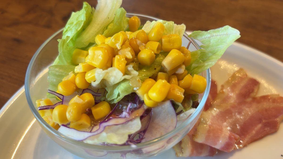 夫の方のカレーは二種類で、ほうれん草とチーズカレー&本日のカレー(卵)