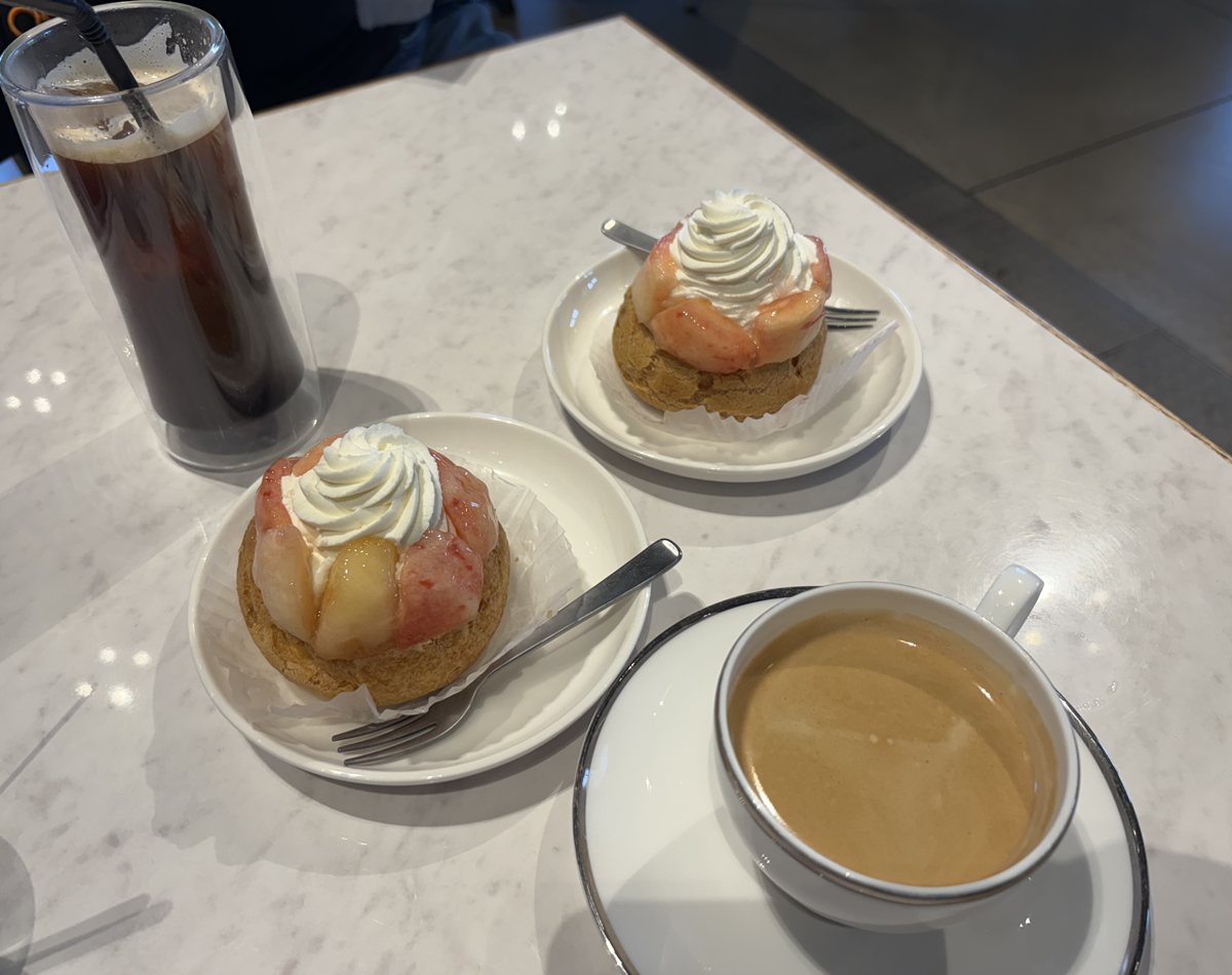 ついでに、桃のシュークリームをイートインしようと