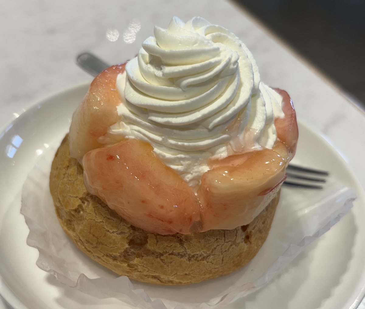 桃のシュークリーム、大きくていいですね!