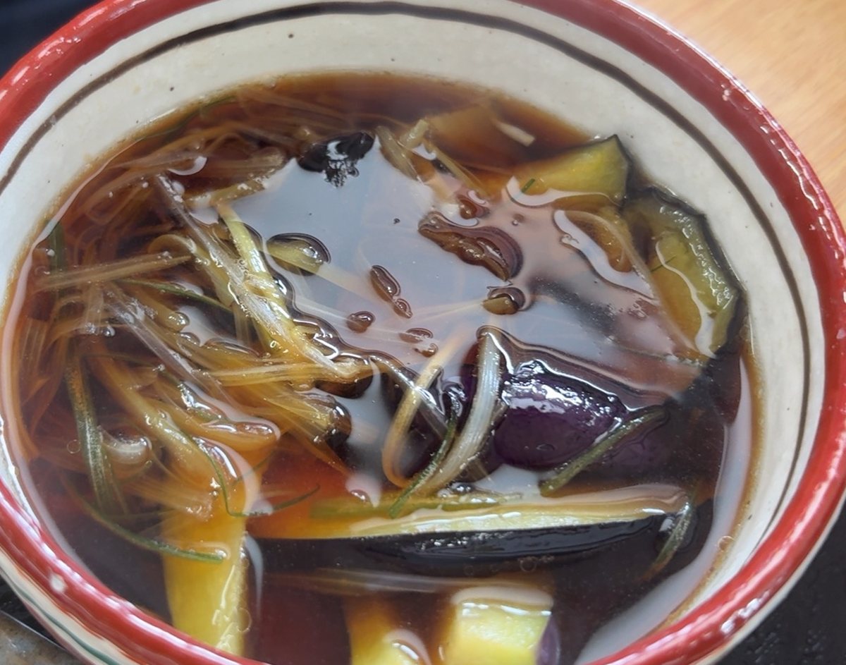 夫「なす汁つけうどん」