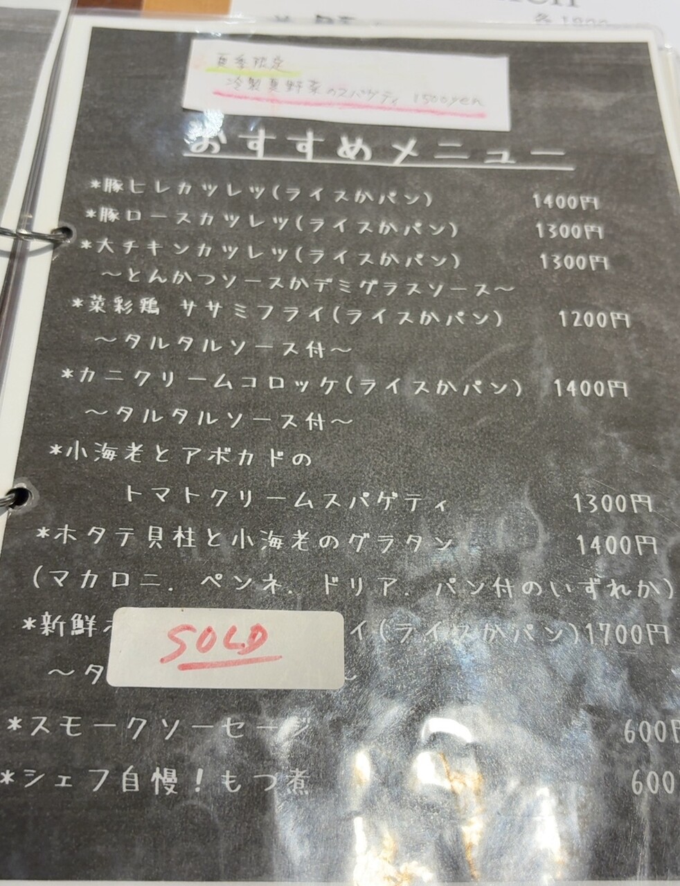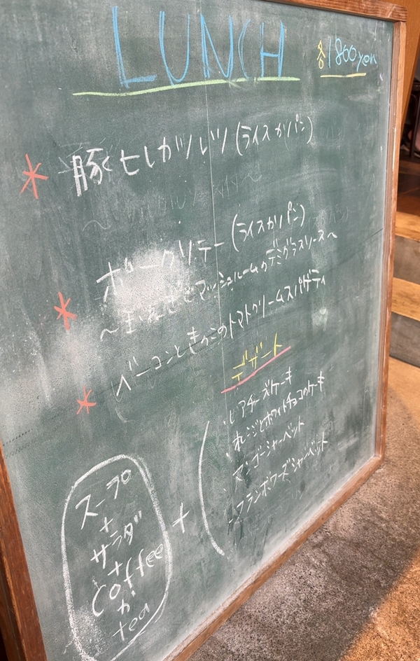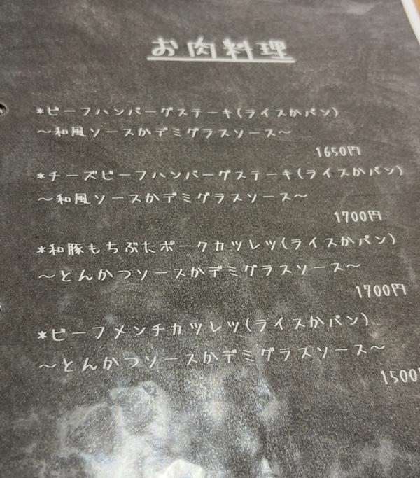 ガッツリ行こうと思ったので、ランチセットの中からポークソテーかな…。