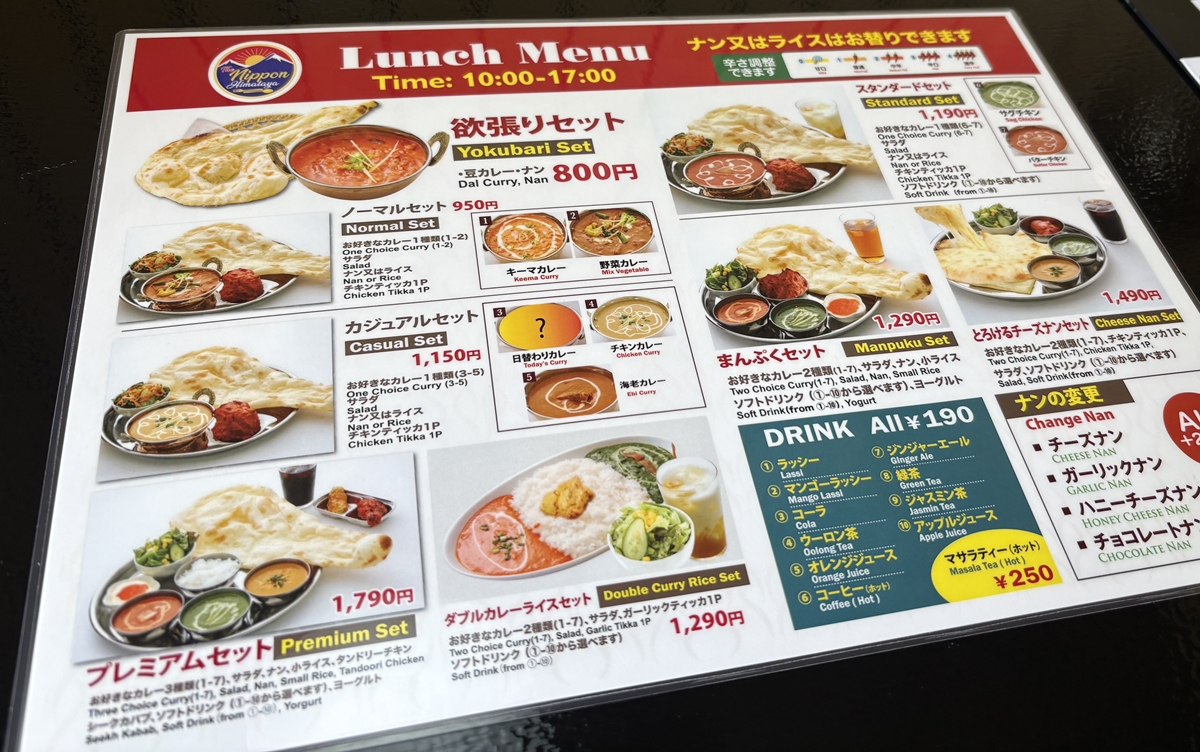インドカレーと和な定食が並列だわ。
