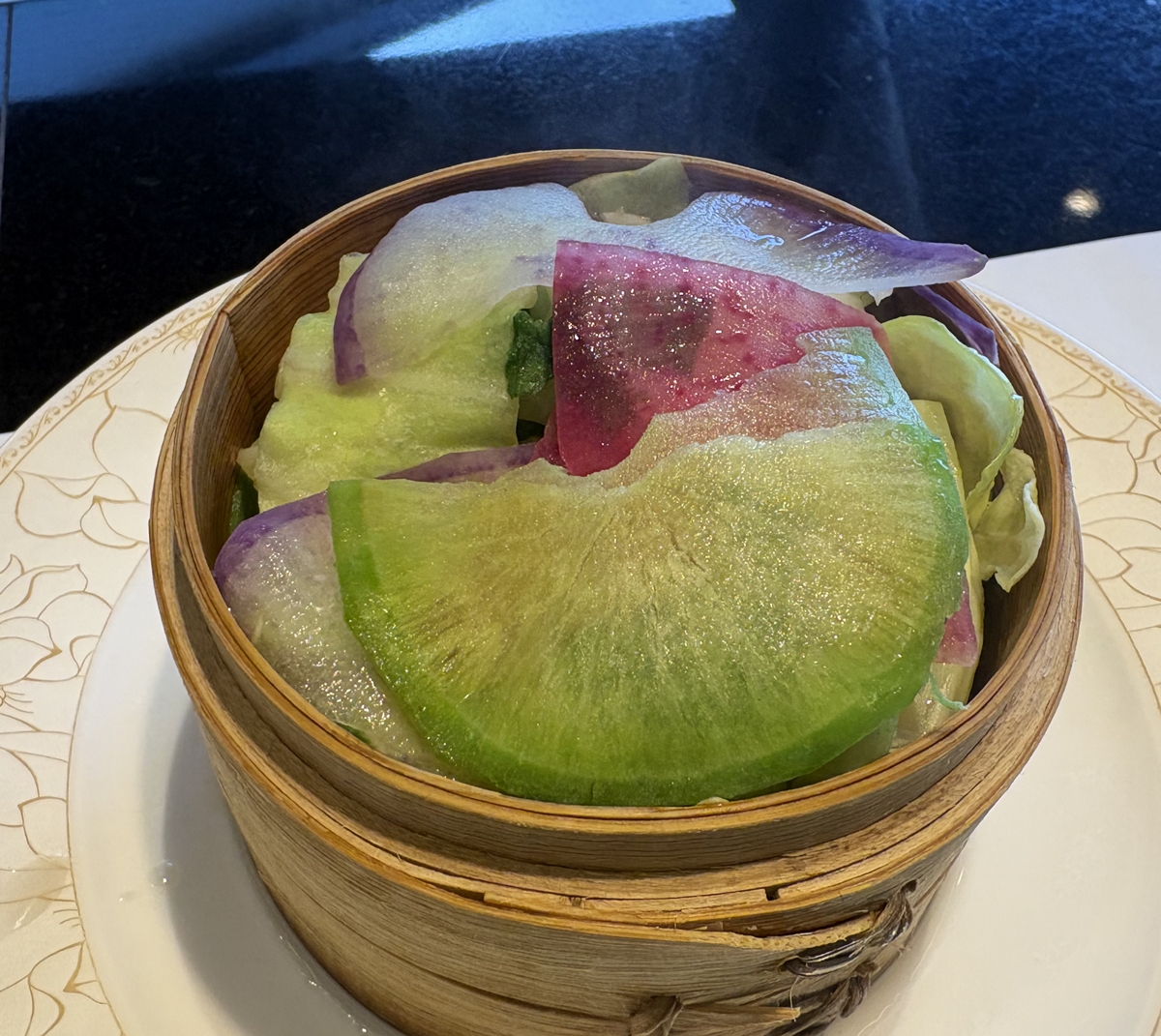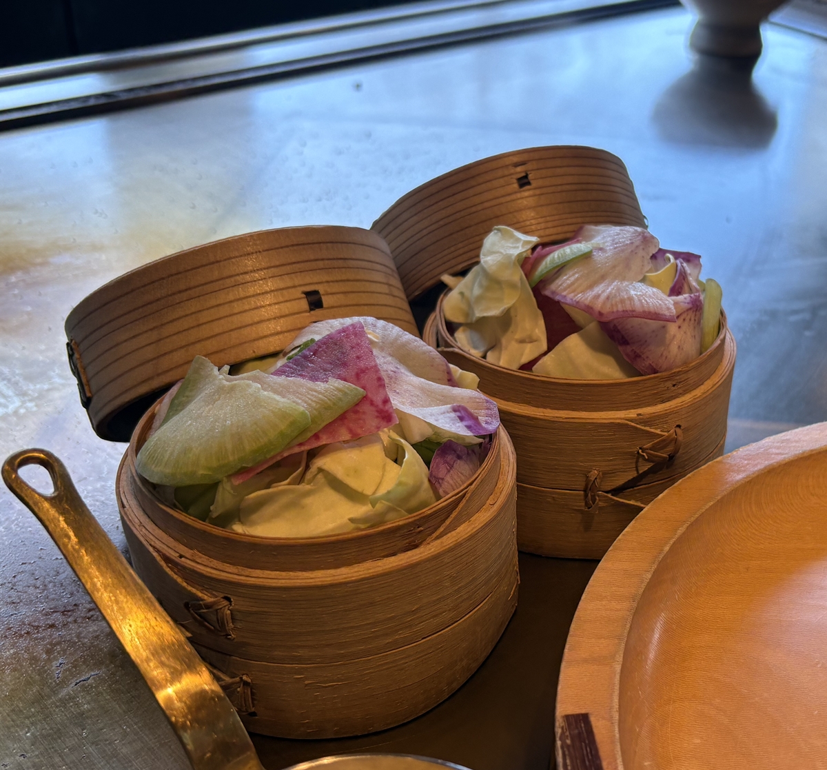 と話してる間に、野菜が蒸しあがりました。