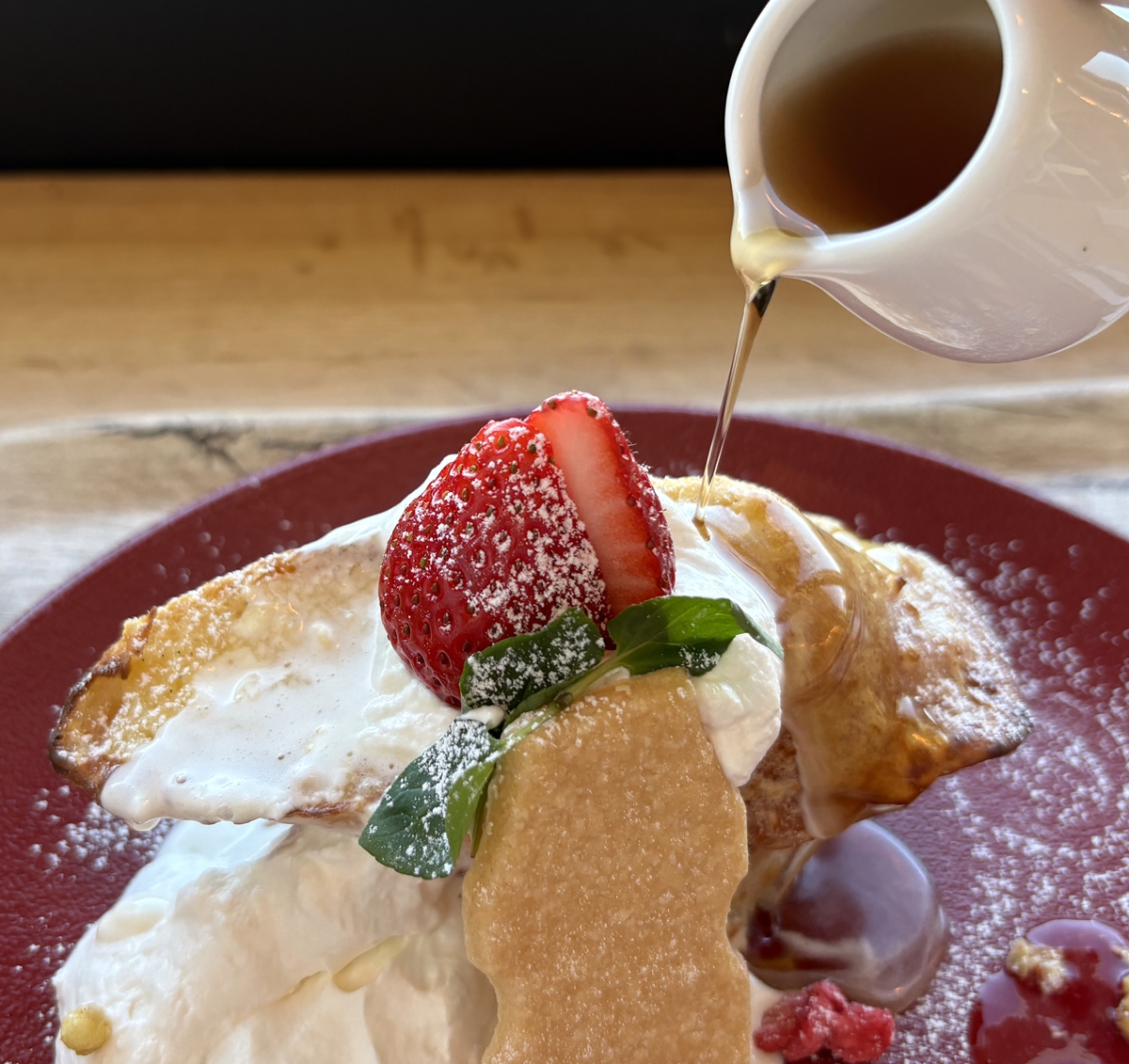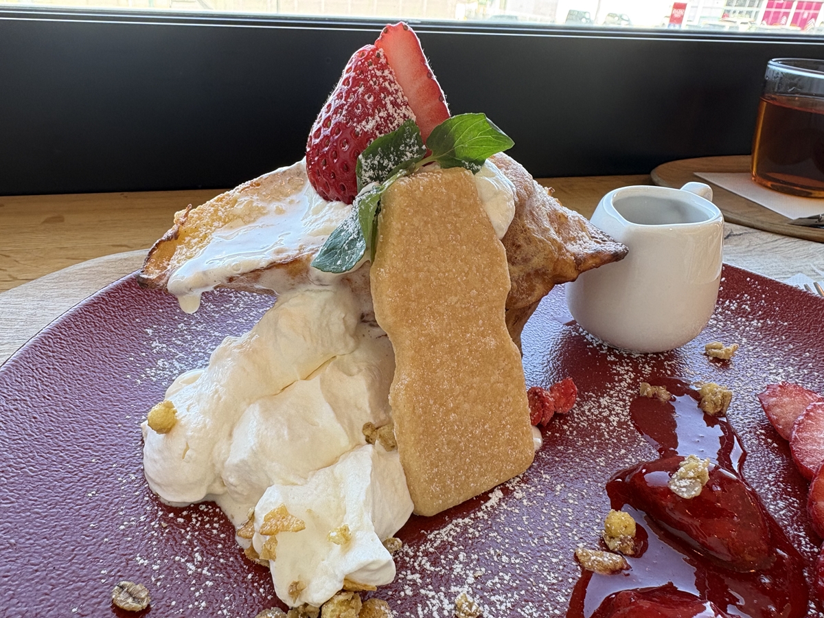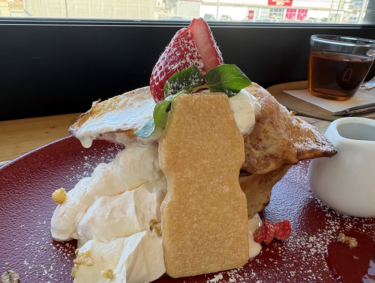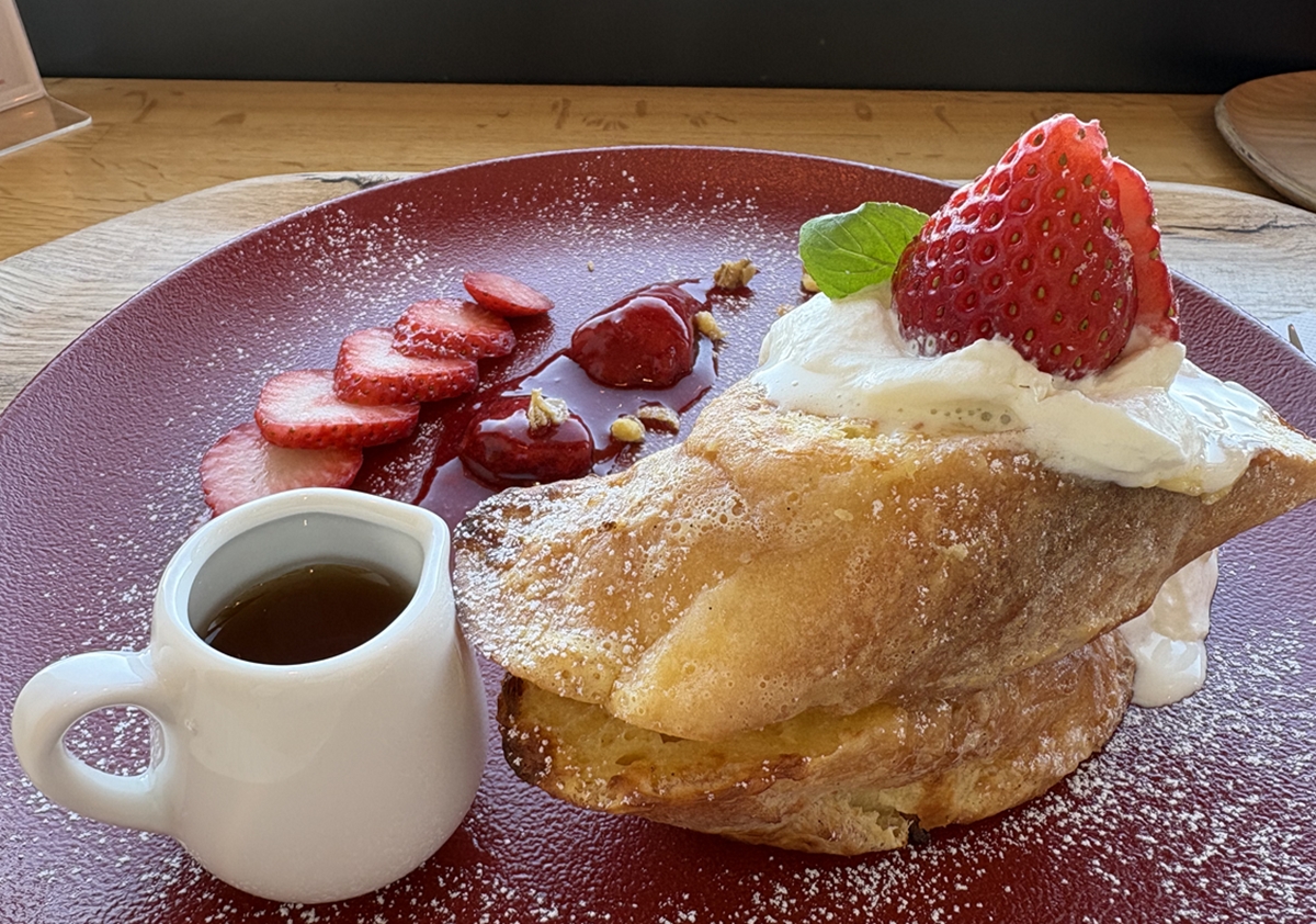 鉄板で焼かれた熱々のフレンチトーストはカリカリふあふあで