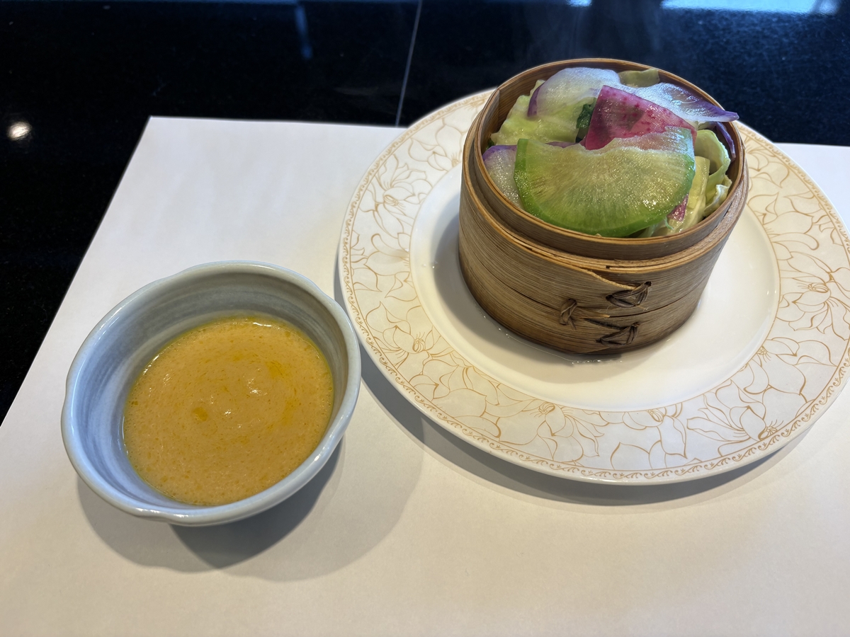 蒸し野菜が最初に出るそうです。ベジファーストありがたや。