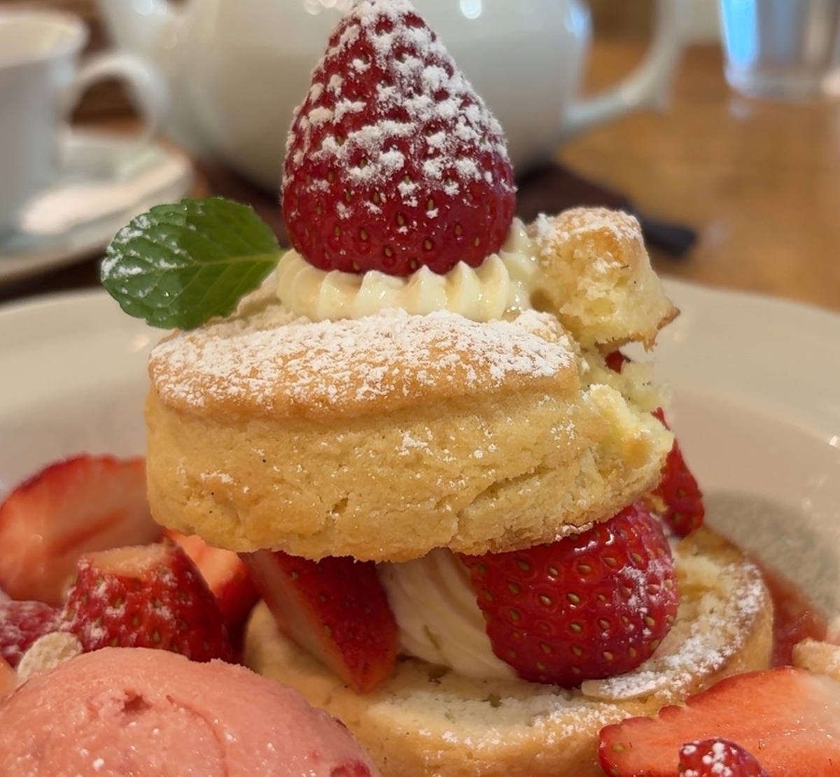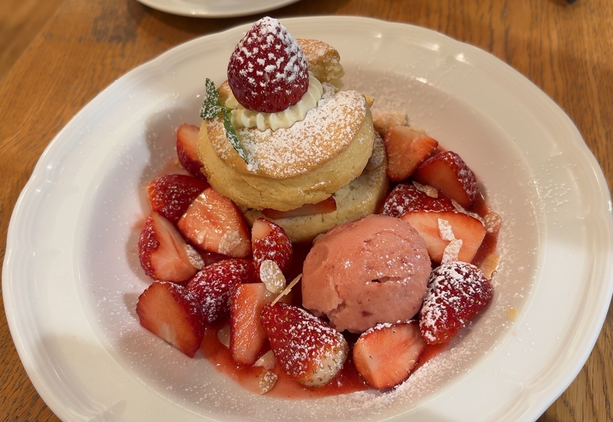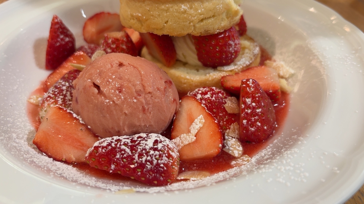 いちごシロップがさくふわスコーンに染み込んで