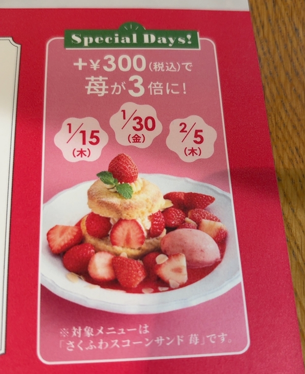 プラス300円でいちごが3倍盛り!