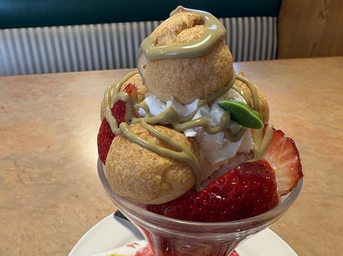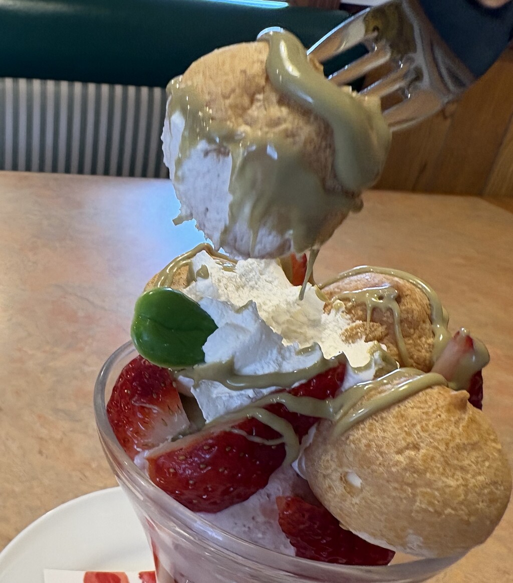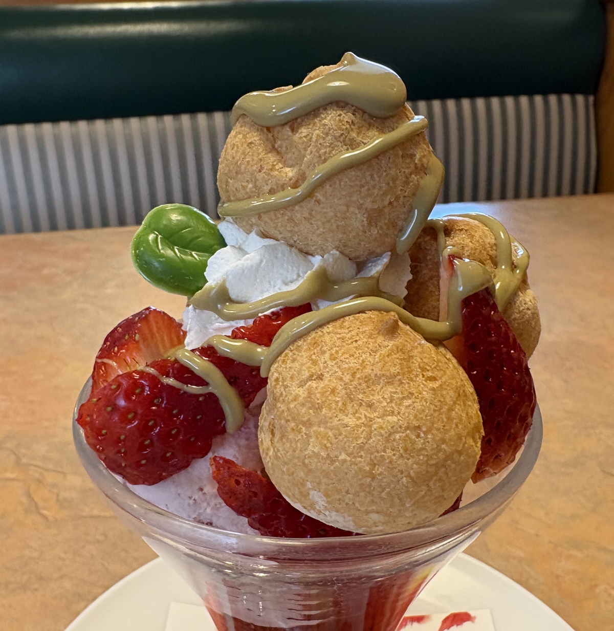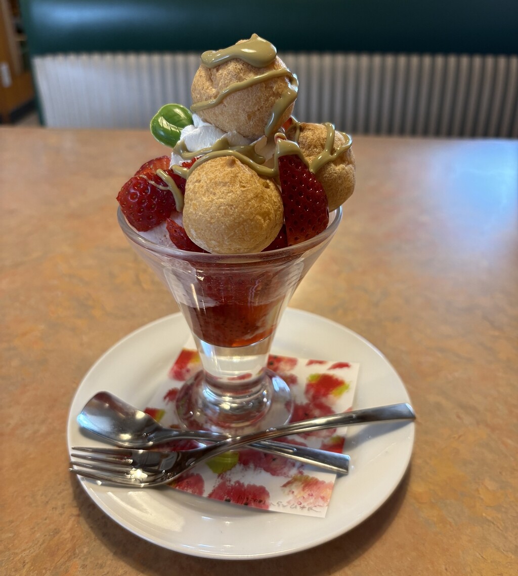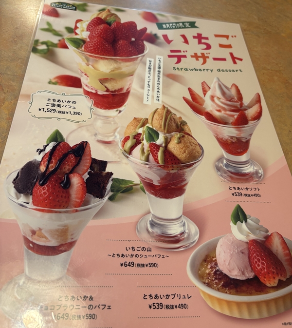 各ファミレスなどで、いちごパフェが出そろってきましたー。