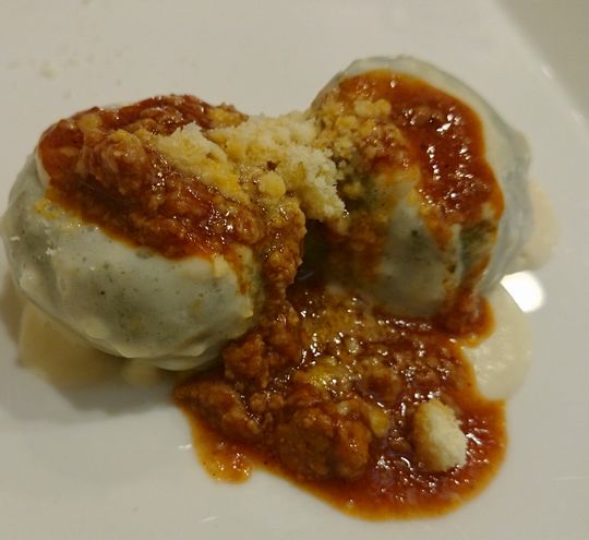 「ホウレンソウとジャガイモの揚げニョッキでございます」