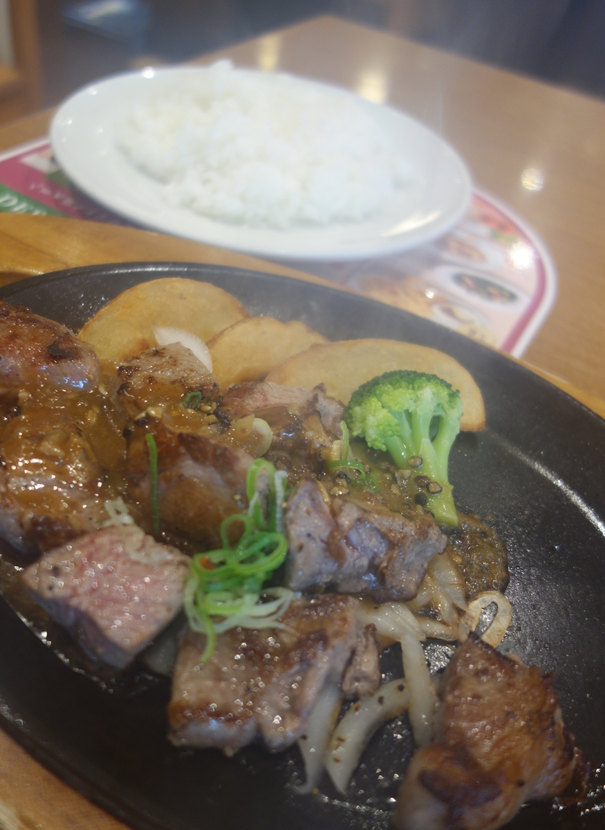 ところで、周囲に同好の士らしい女性がいっぱいいたのですが(みんなカットステーキランチ)、みなさんご飯を半分残してました。メニューに小盛り設定があると、いいですね。