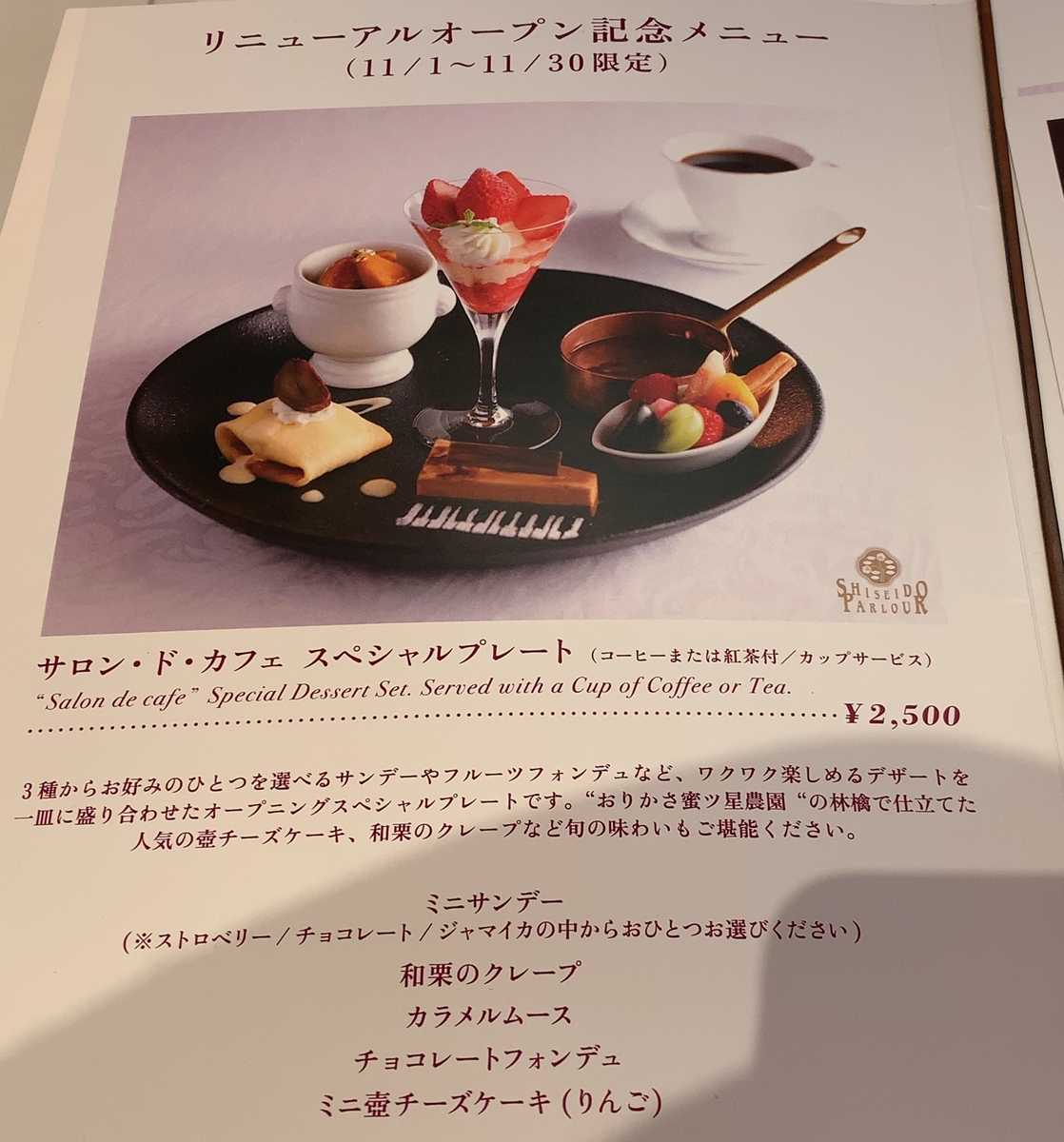 こちらのリニューアル記念「サロン・ド・カフェ スペシャルプレート」が気になる。