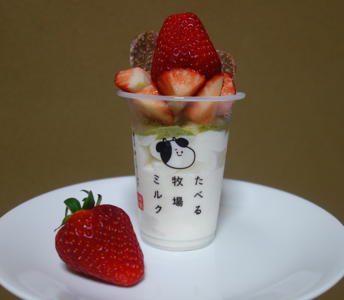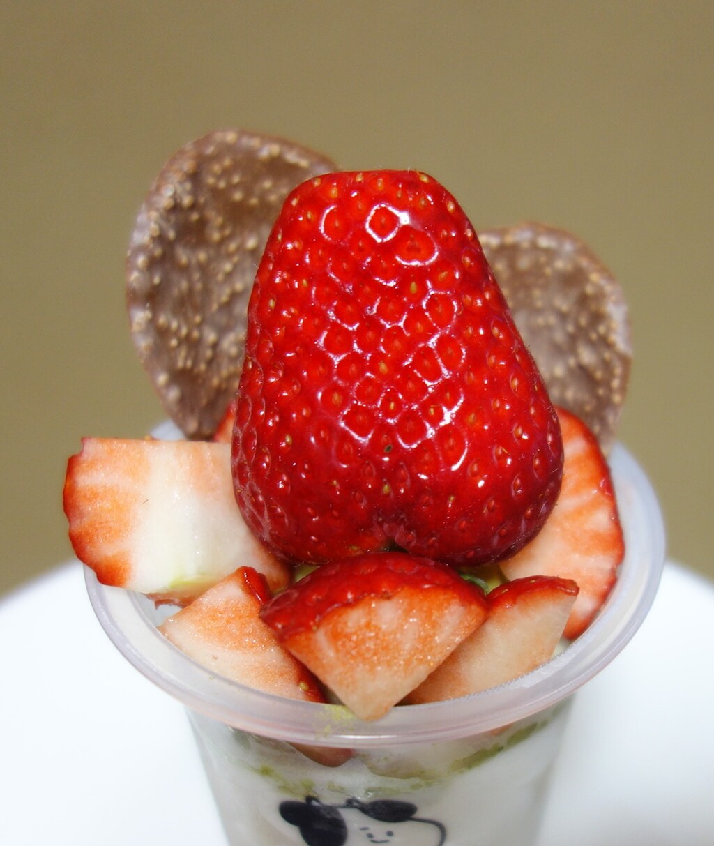 こちらには「とちおとめ」(いちご農家のご近所さんにいただいた)を乗っけて食べました。