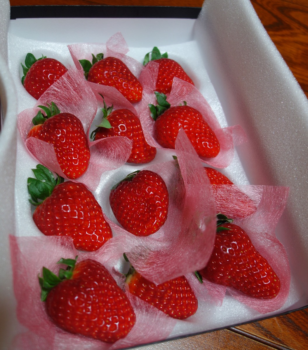 とちおとめを(実家で)栽培している知人にも一粒食べていただいたんですが、「甘いですね~。いつまでも甘さが口の中に残る」と、おっしゃっていました。
