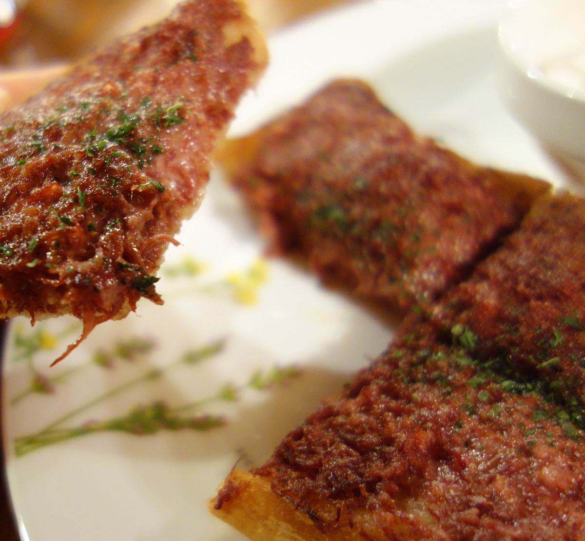カリカリ(中しっとり)のトーストに、しっとりコンビーフ。