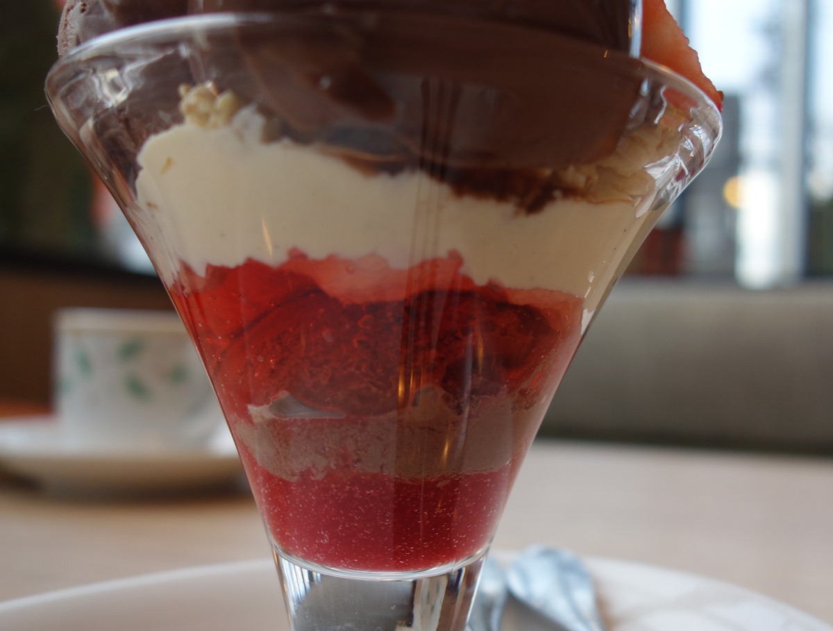 チョコプリンが濃厚なので、酸味強めのおとめちゃん、ナイスコンビネーション。