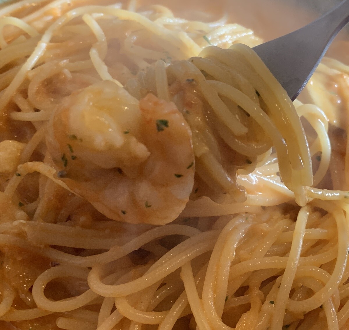 わたしにとって海老トマクリの魅力は、トマトの酸味とクリームのこってり加減の「綱引き」。