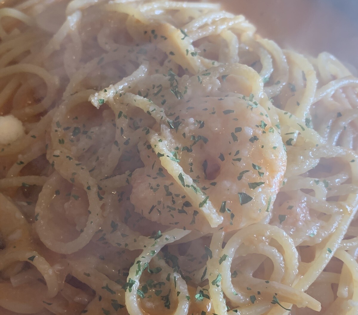 海老のトマトクリームパスタ。略して海老トマクリの文字を。