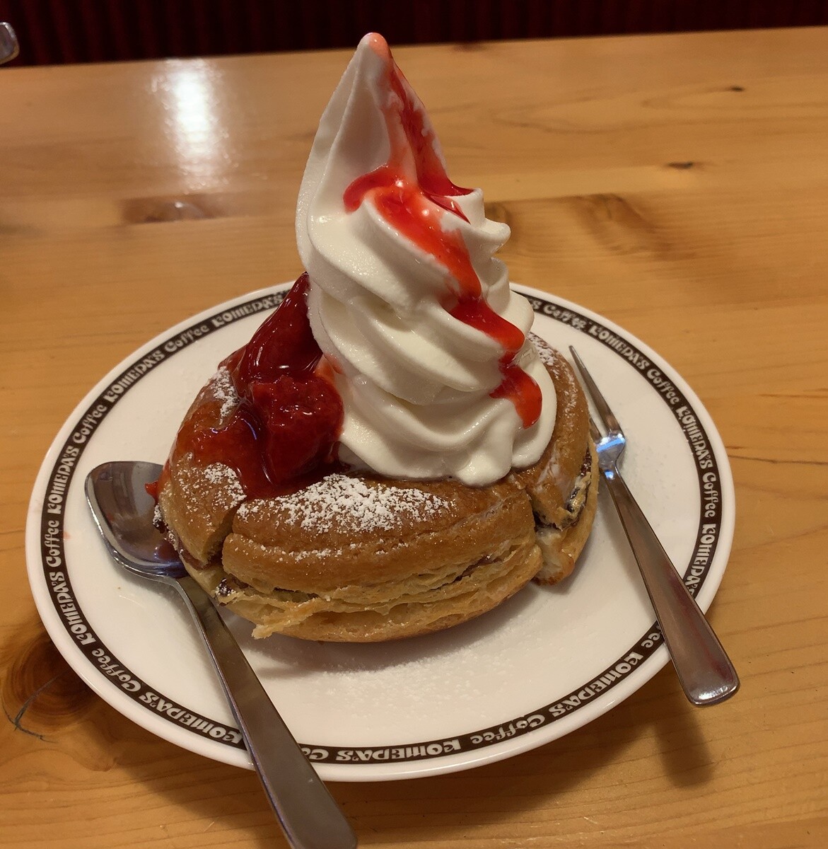 コメダコーヒーで「いちご×あんこ×ソフトクリーム」の期間限定商品が出たとか。
