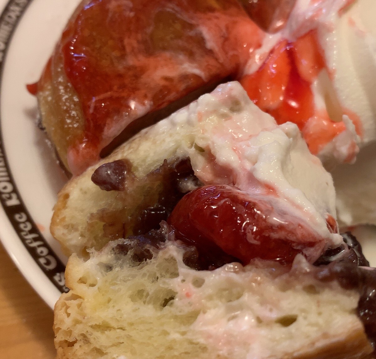 ノワールの甘さ、あんこの甘さ、いちごソースの甘さ、ソフトクリームの甘さ。