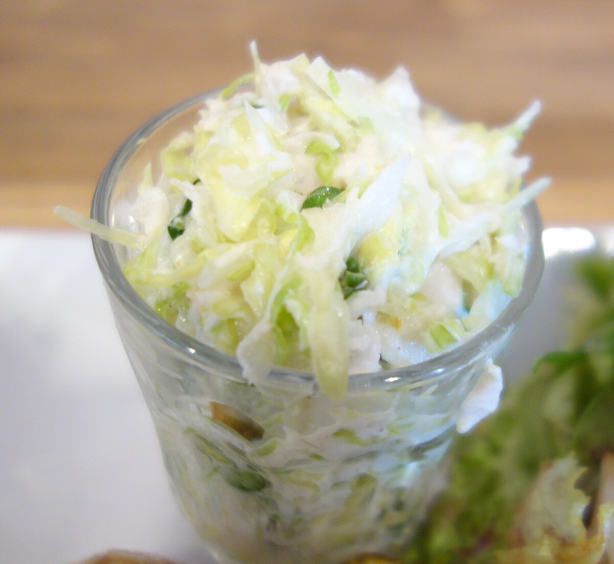 ・前菜その1 (新キャベツと柚子胡椒と自家製サラダチキンのマリネ)