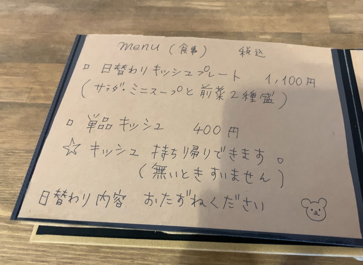 キッシュ(本日は鶏ひき肉&里芋の和風 or ほうれん草とベーコン)か