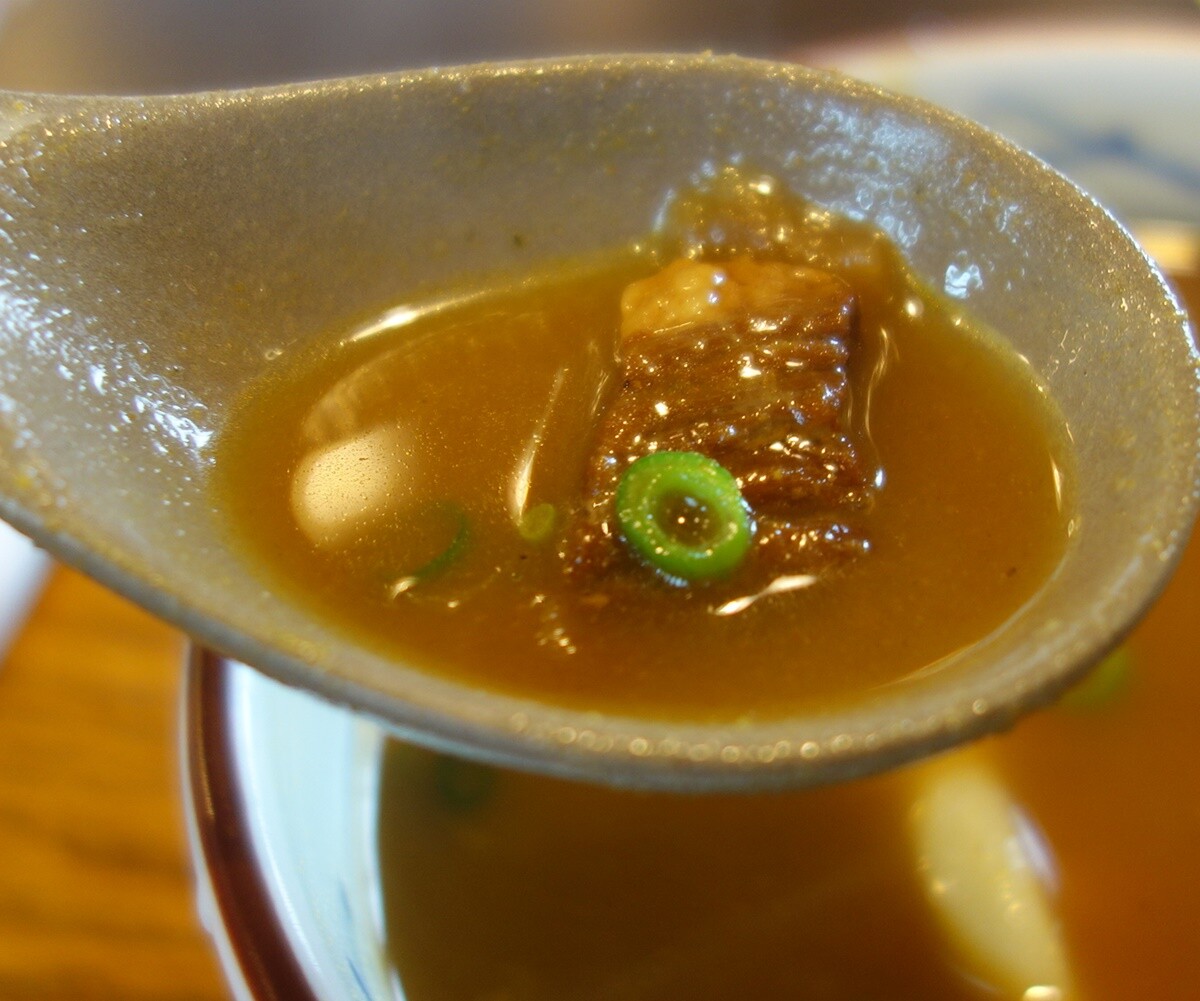 4.カレーうどんは、牛すじカレーが使用されているに違いない(肉)