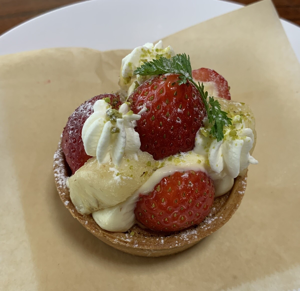 イチゴが香味豊かで、クリームおいしく、タルト生地もさっくりほわんっとした食感。