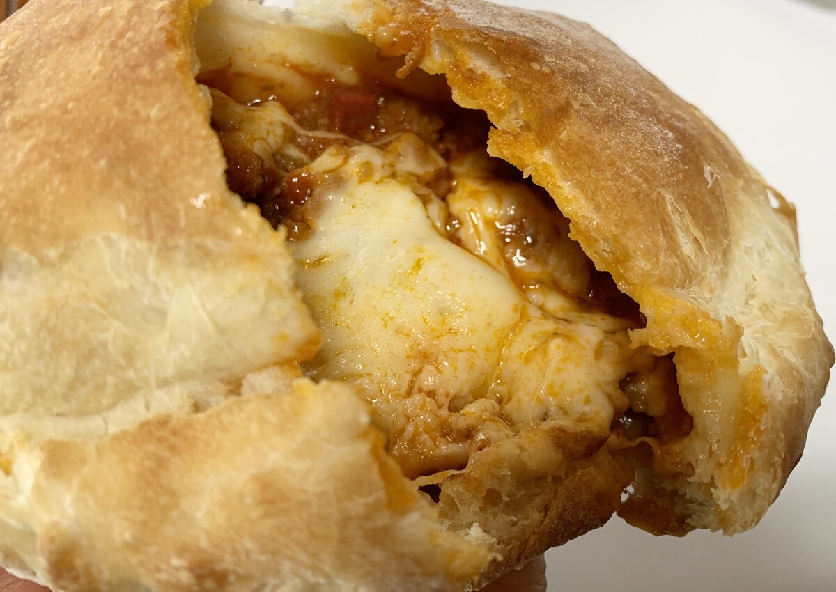 ざっくりほわんっとした生地に包まれた、怒涛のチーズびよんとミートソース。
