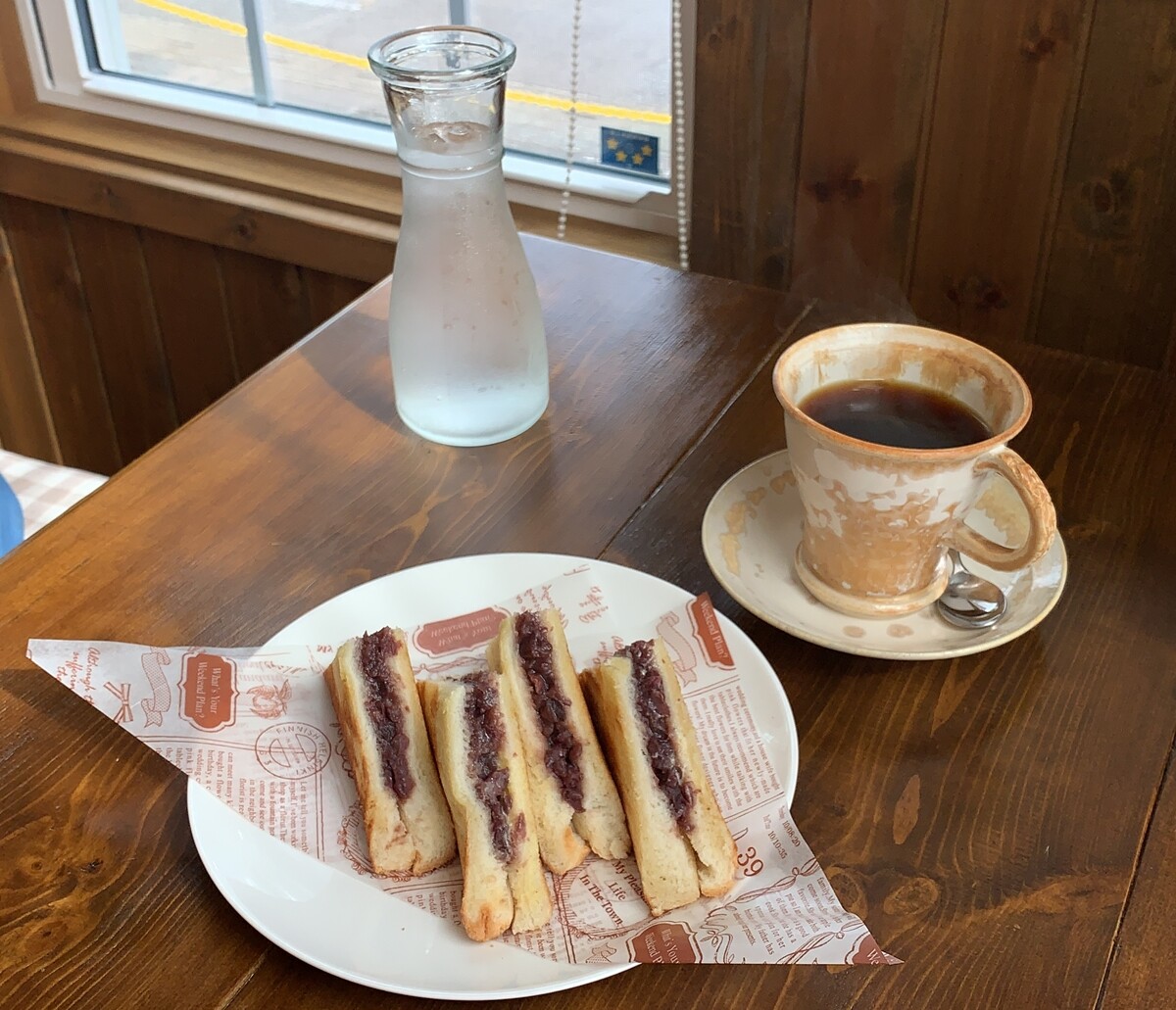 既にホームページを見てメニューは決めてきてあって、あんバターホットサンドと、ブレンド(ひかり)をいただきます。