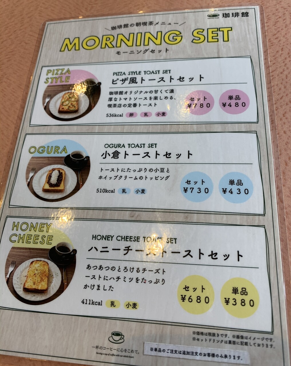 珈琲館宇都宮店さんなのですが、モーニングメニューはほぼ不動なので