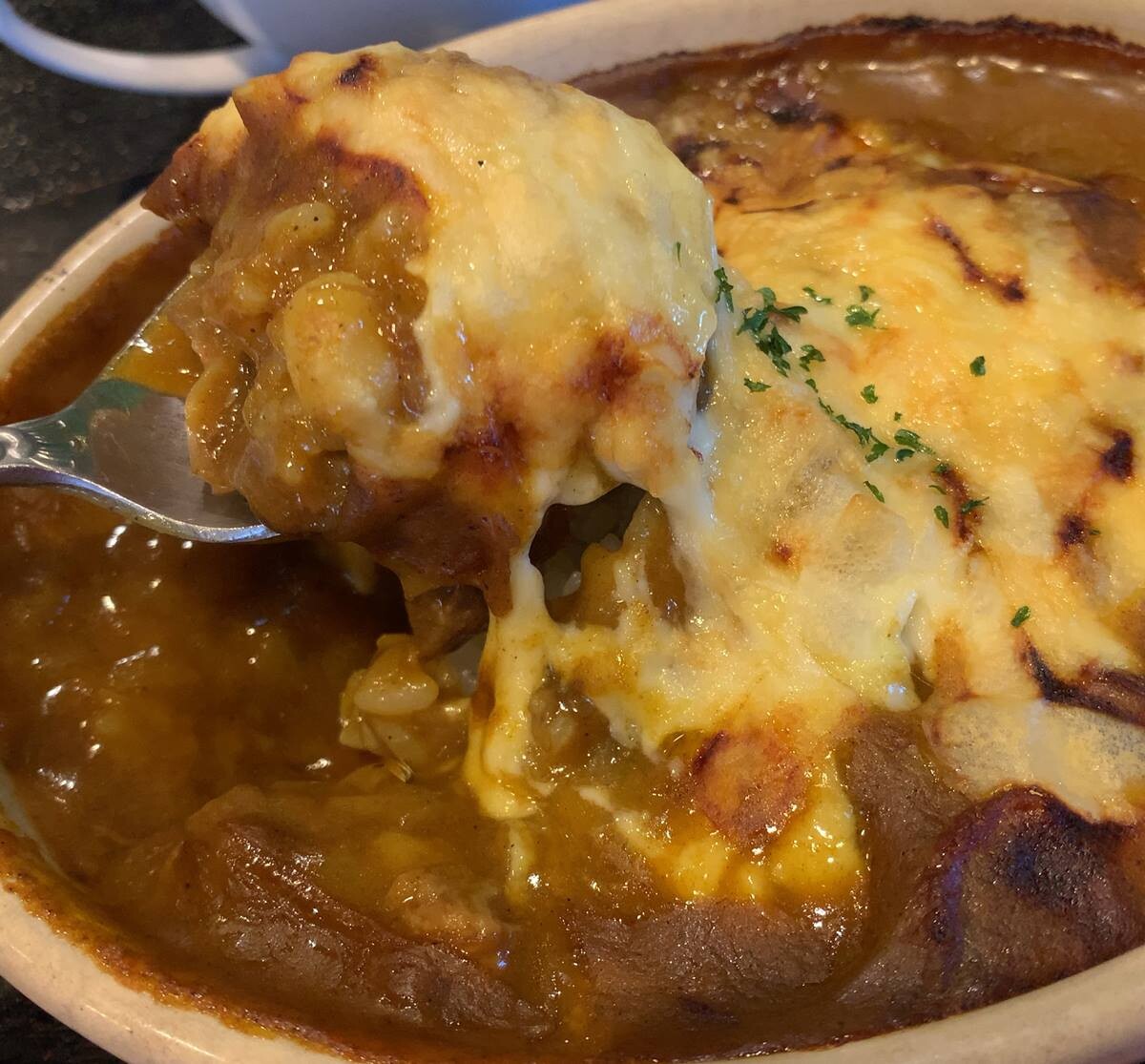 夫「スープかけた方が断然良い。牛系スープの味」