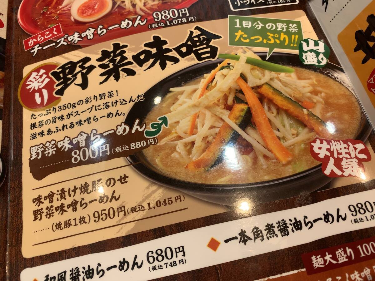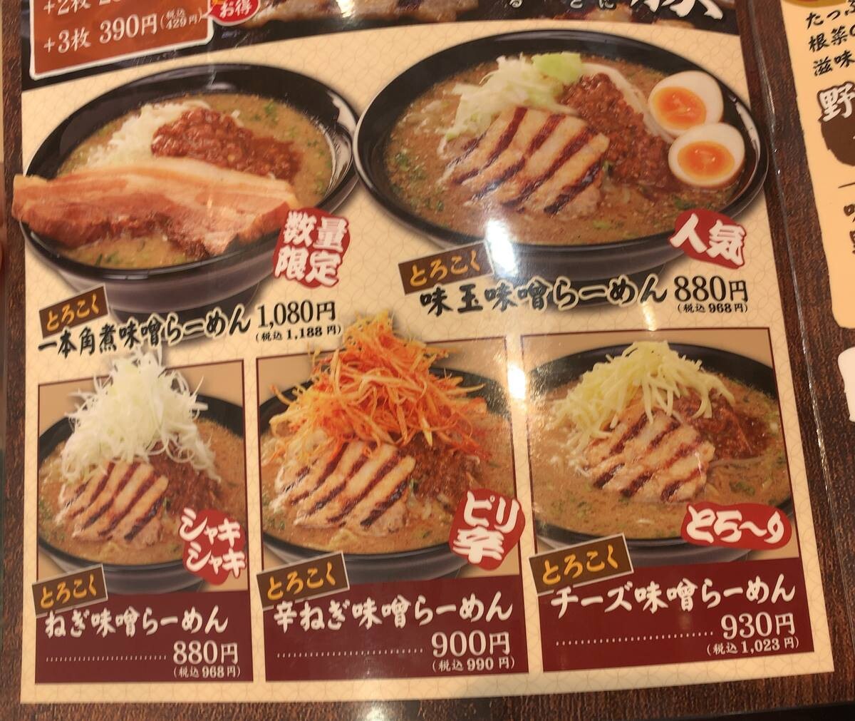 時間が無いので、普段の私なら絶対食べる「一本角煮味噌らーめん」は見送り。