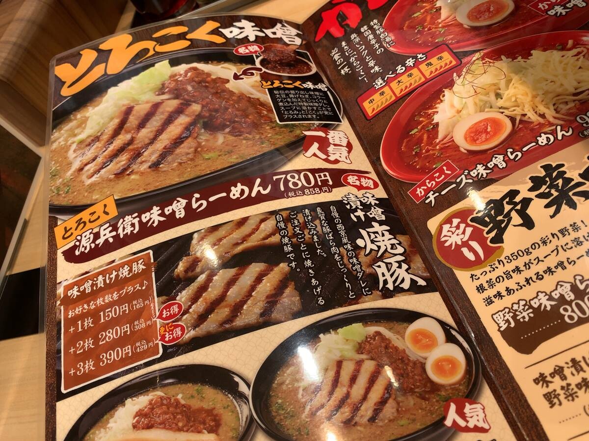一番ベーシックな「とろこく源兵衛味噌らーめん 」にしました。