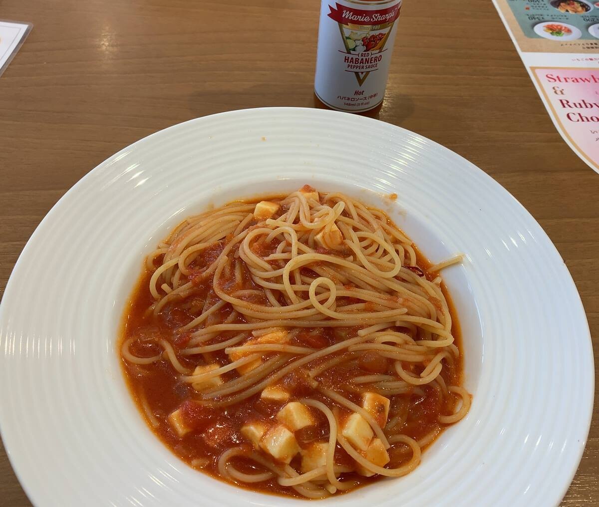 麻婆パスタと一瞬思ったけど、ダイス状になっているのは豆腐ではなくモッツァレラだった。