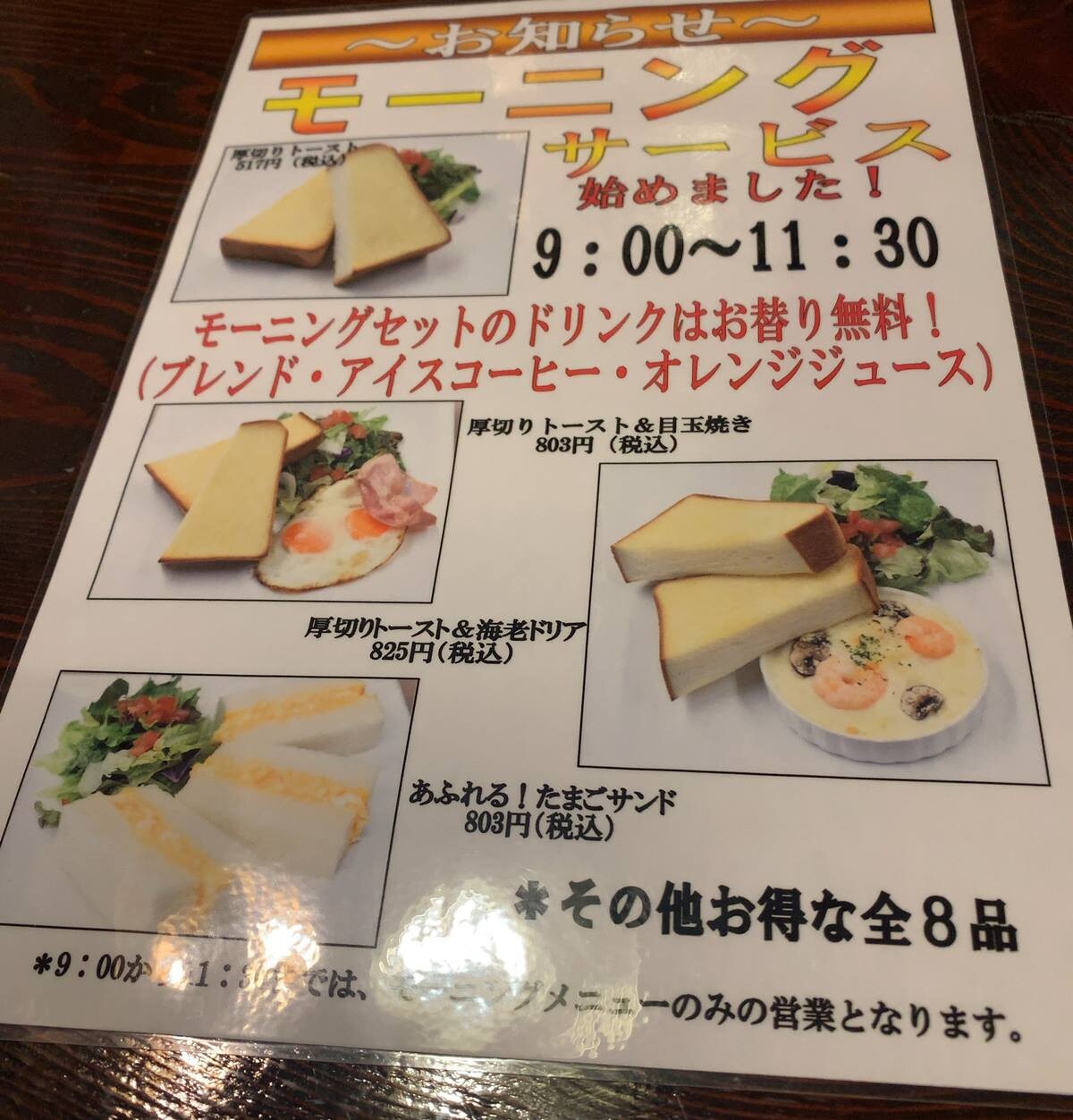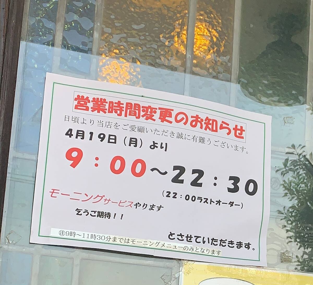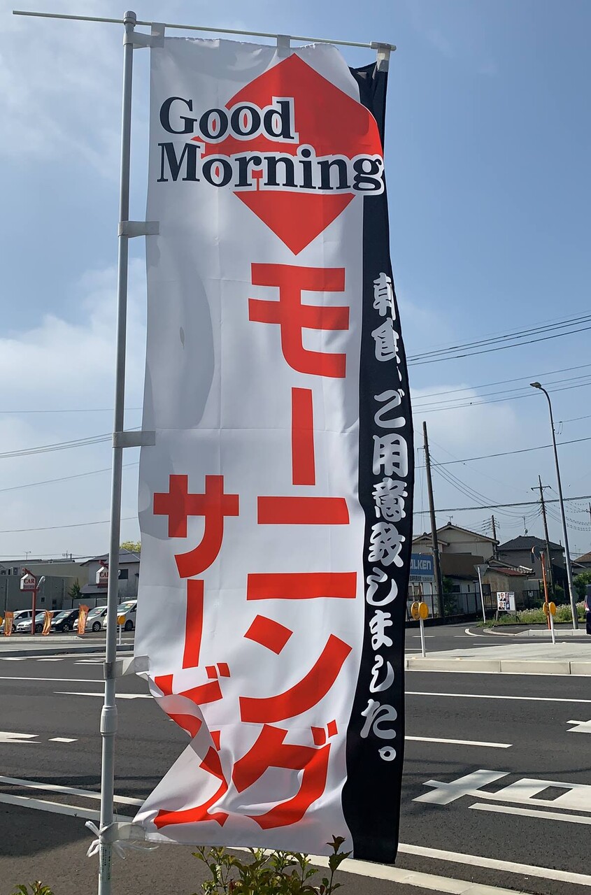 モーニングサービスのノボリ旗が。