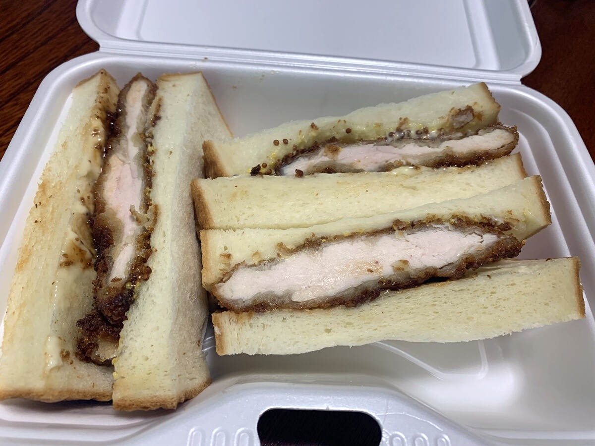 オヤツ&夜食用に、チキンカツサンドテイクアウトしました。500円です。