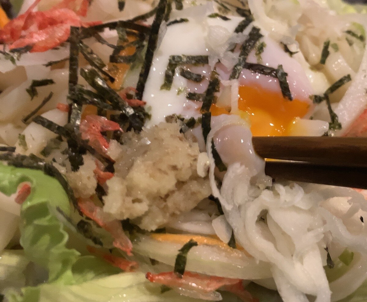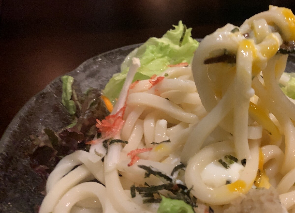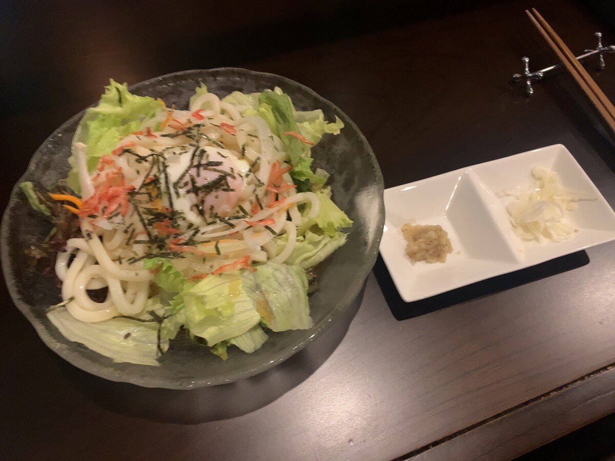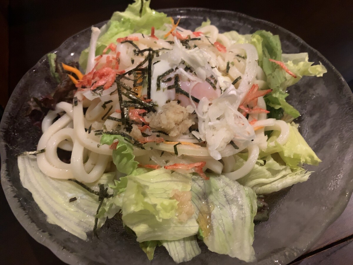 バーで食べるサラダうどんというのも、きっとオツなもの。