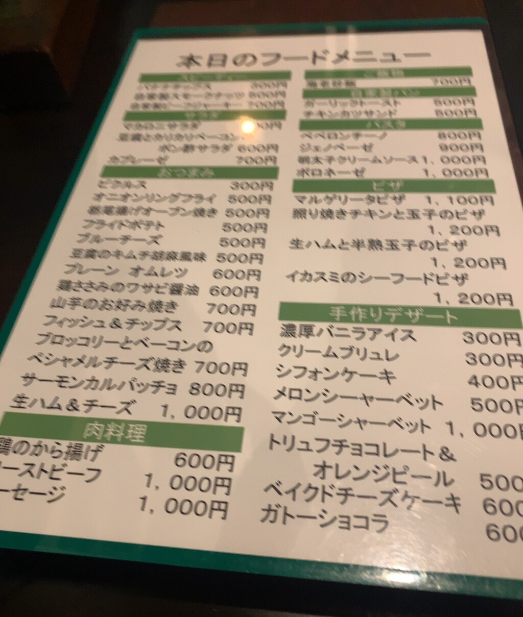 フードメニューからどうぞのとのことでした。