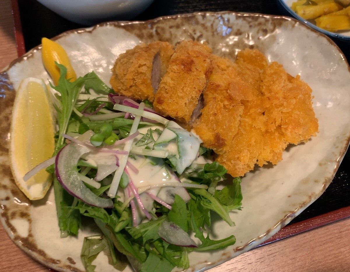 鋭い眼光で見つめていたらヒレカツ二切れくれましたが、肉うまい!