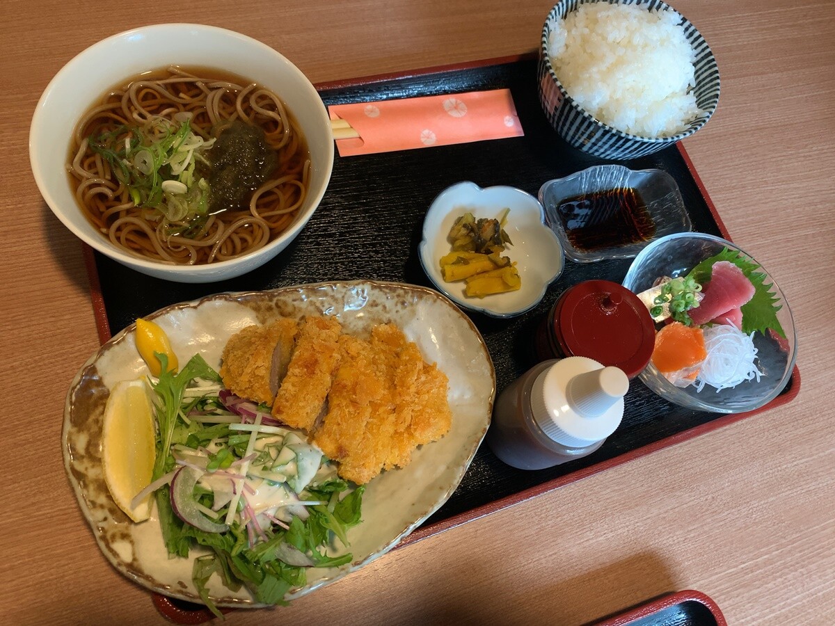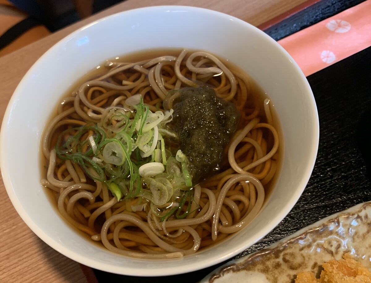 夫は+250円でお味噌汁を蕎麦に変更してました。