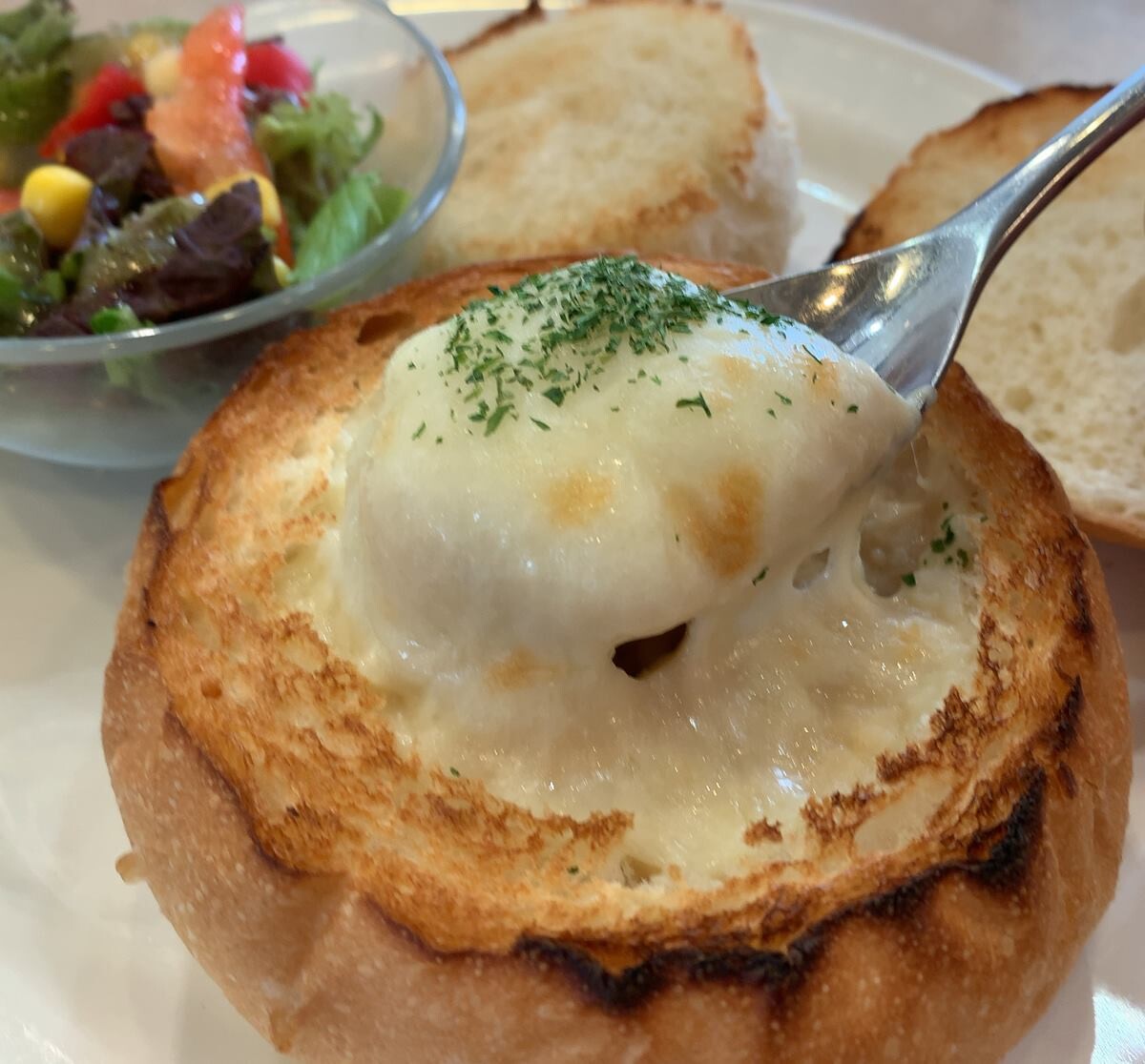 中身をくり抜いた、くり抜かれた方のパンにグラタンをつけて食べる時がいちばん好きです。