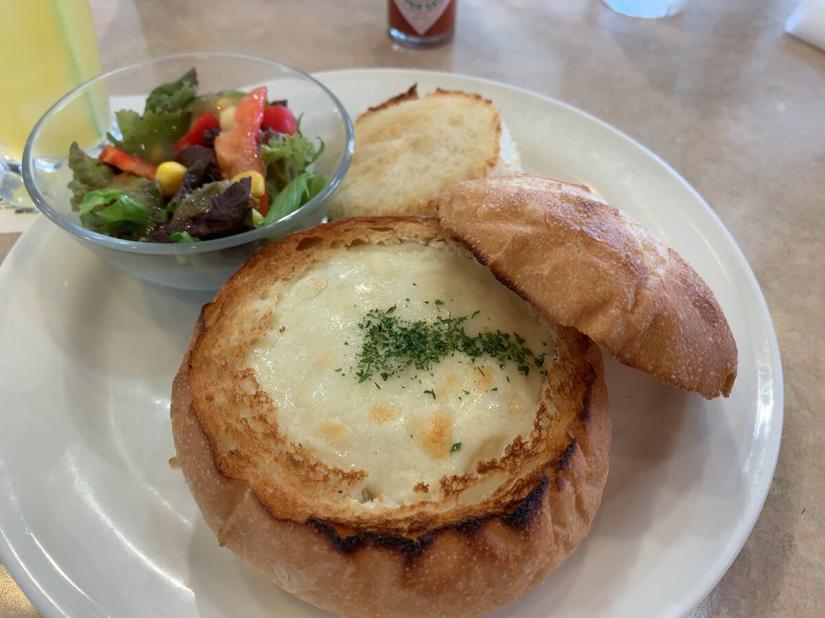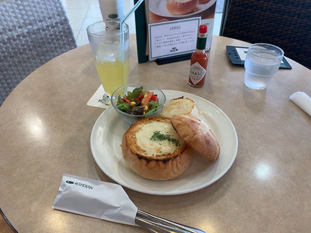 珈琲館の「焼きたてホワイトグラタンパン」なのでした。