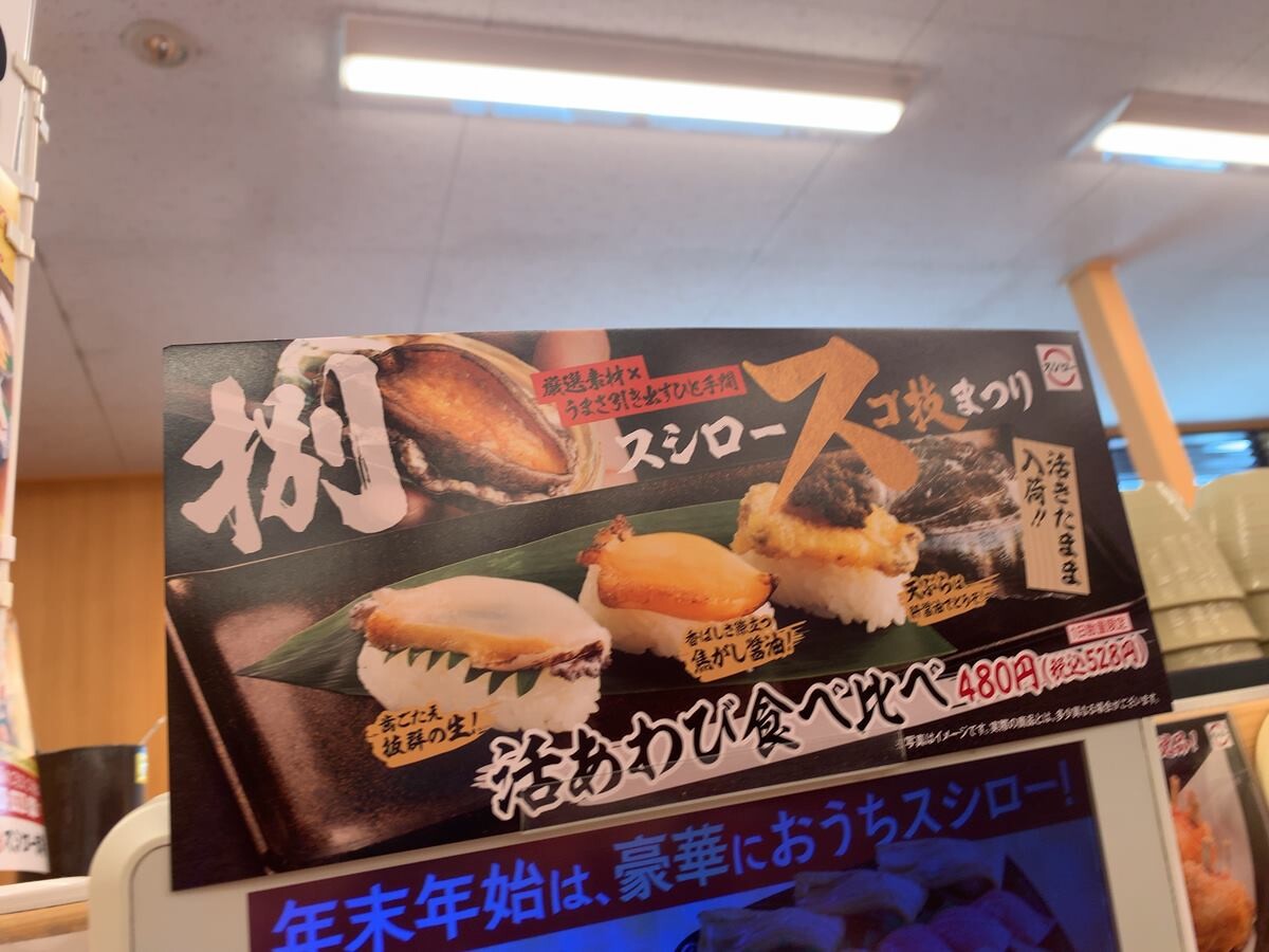 活きあわび食べ比べ 528円が目に入り