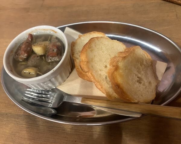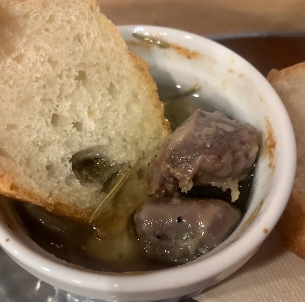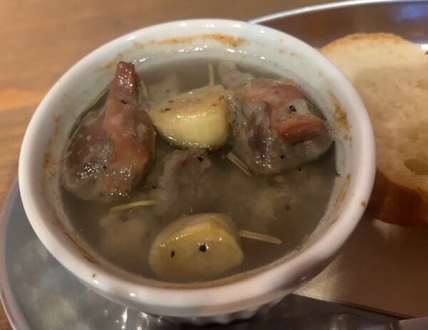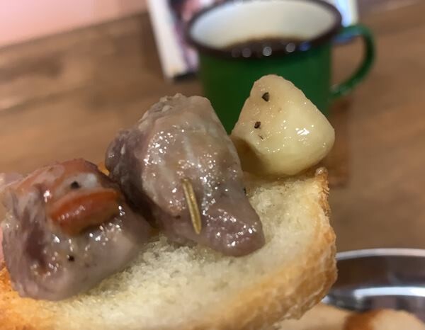 既にお昼は食べているので(巨大かき氷)、砂肝コンフィのみで(500円)。