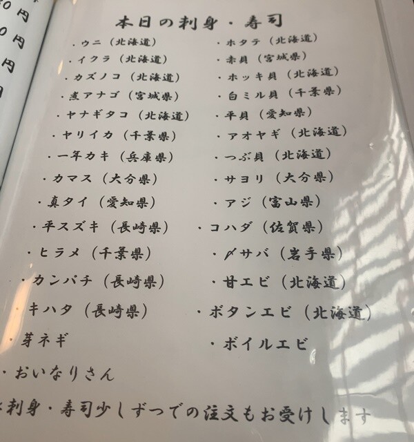 いつの日か、いろいろめでたいことがあったら、こちらのお店で特上寿司を食べるんだとメニューをまじまじと眺める私でした。