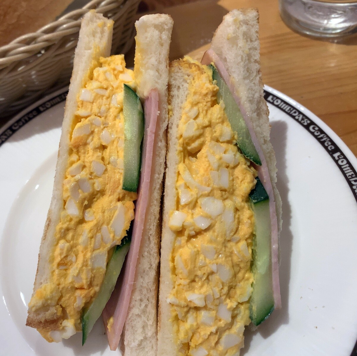 夫と交代して休憩中にコメダ行ったけど、お腹そんなに空いてないしな〜アッミニサンドとかあるんだ!これくらいなら食べれるかな😊と思って注文してきたのが右