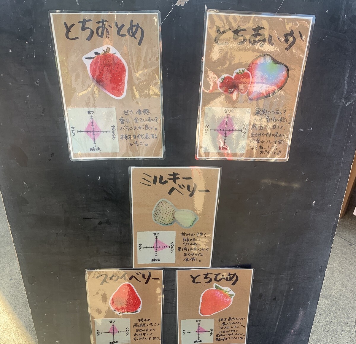 「道の駅ましこ」で、先日「いちご祭り」があり、カフェの「ましこのごはん」さんで祭り限定いちごパフェが三種類出ました。